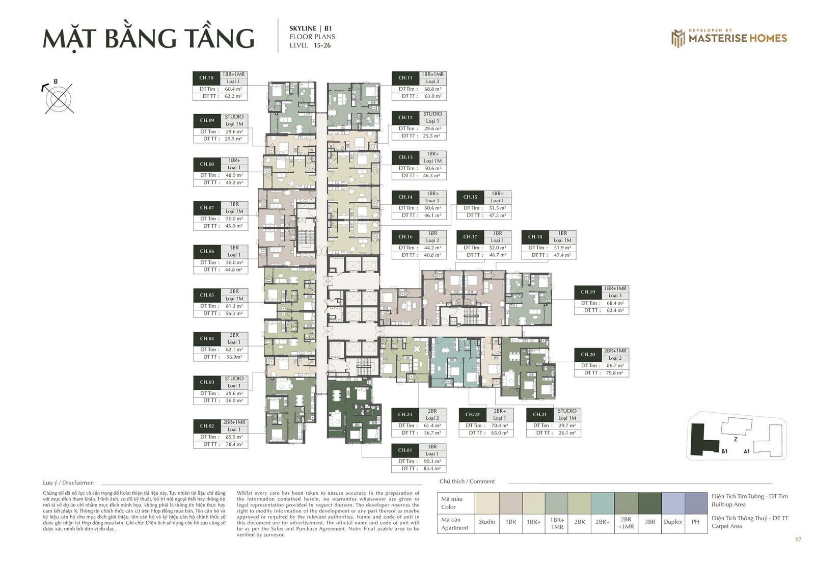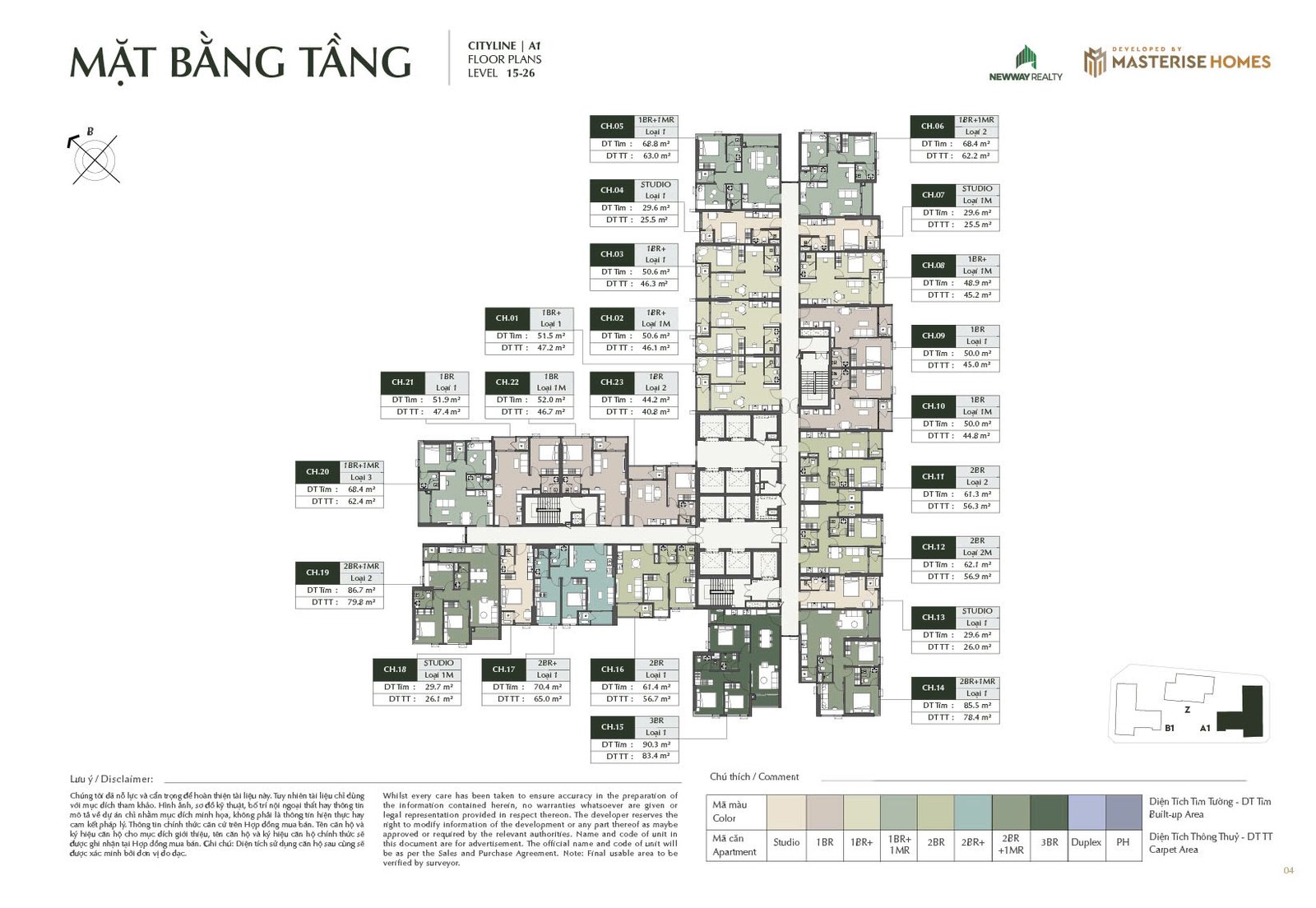Loại hình căn hộ: Studio, 1PN, 1PN+, 1PN+1MR, 2PN, 2PN+, 2PN+1MR, 3PN, Duplex, Penthouse